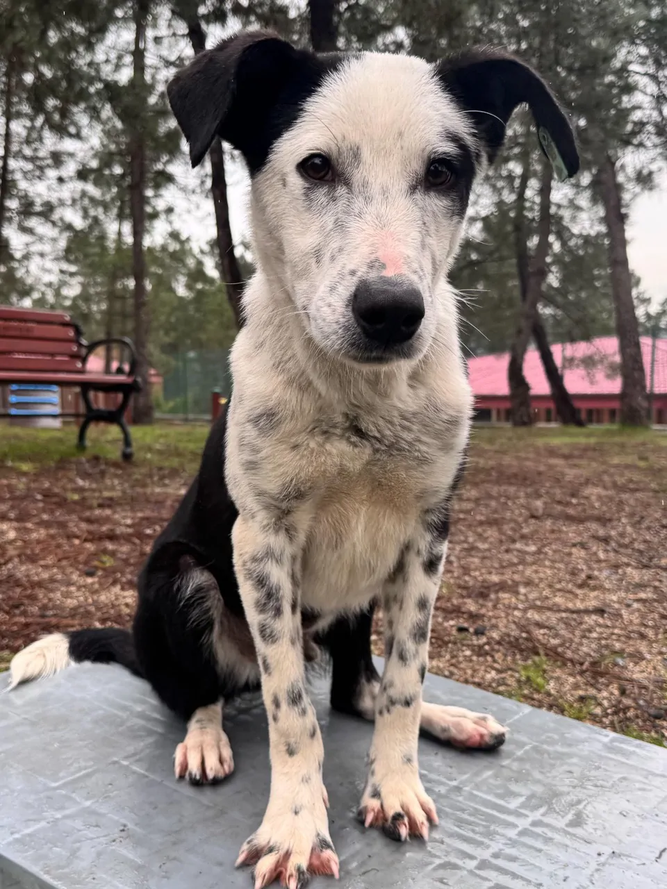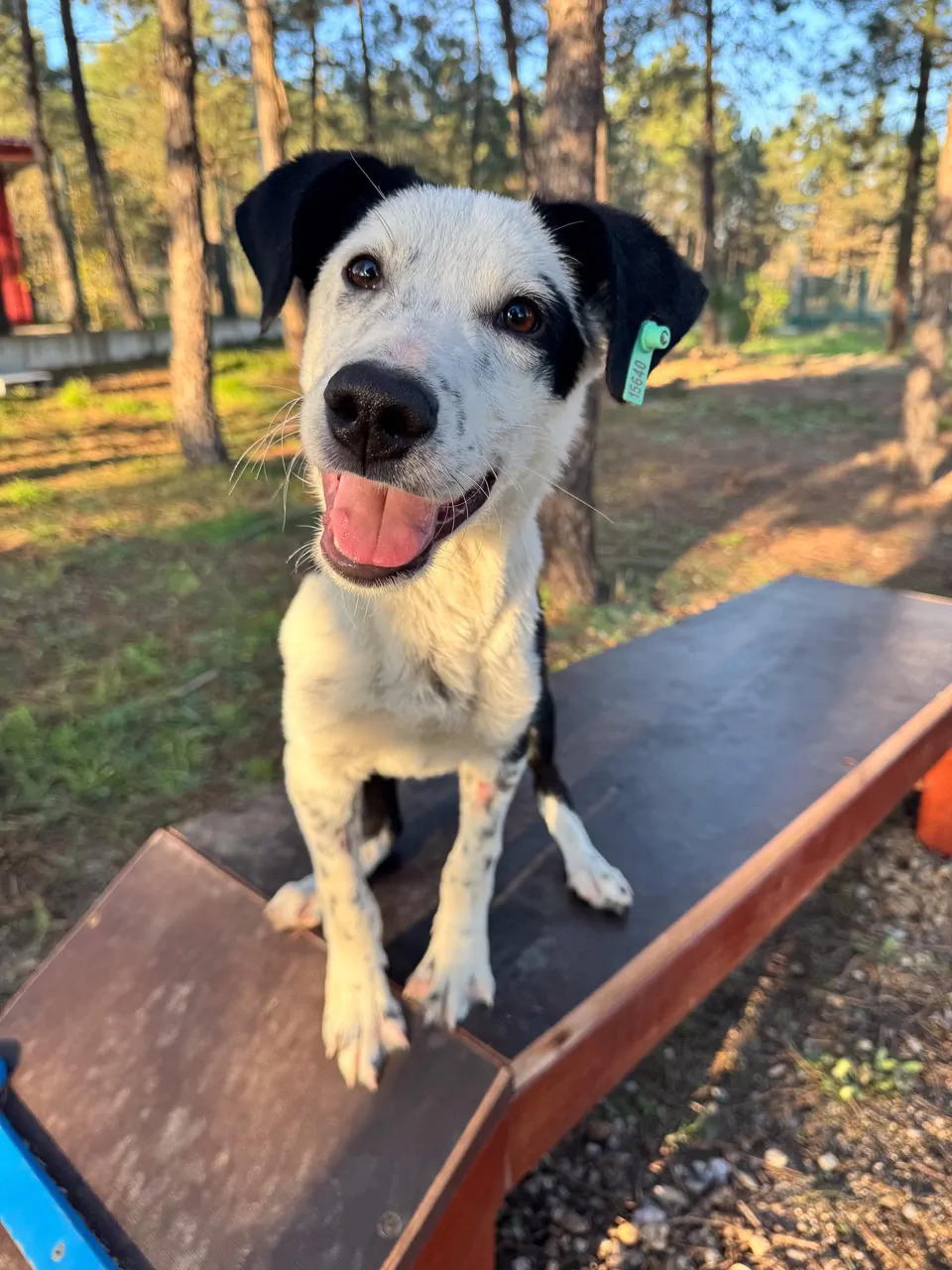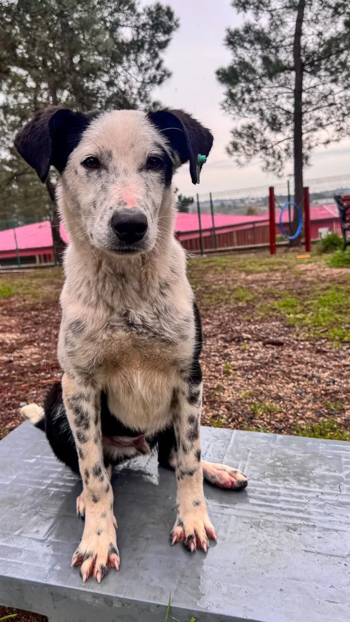 Erkek ve kısırım. 9 aylığım. Orta boyum, atletik bir yapım var. İri değilim, atletik, oyuncu ve ergenliğe doğru giden bir yavru köpeğim.. Siyah kafam ve kulaklarım yüzünden bana “şapkalı” diyenler oluyor. Gözümün kenarındaki siyah leke imzam gibi. Ön bacaklarım benekli, biraz dalmaçya vari.