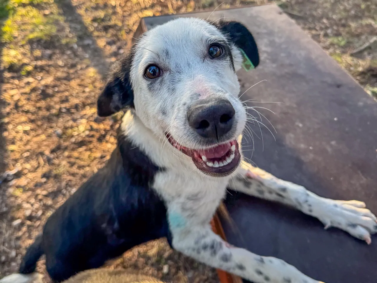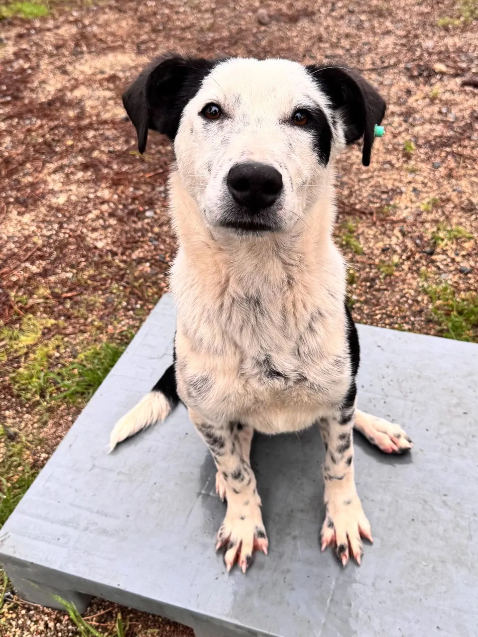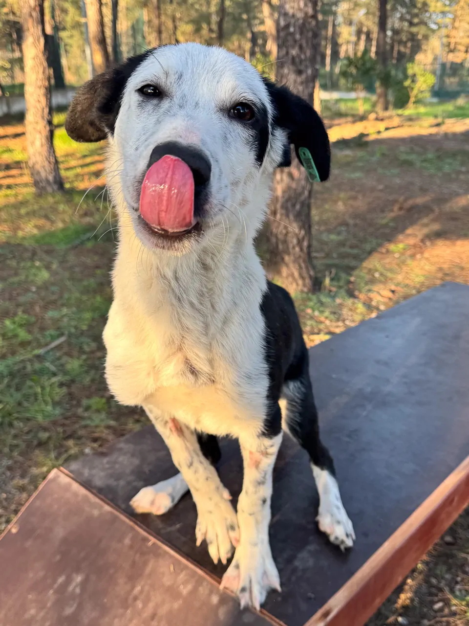 Erkek ve kısırım. 9 aylığım. Orta boyum, atletik bir yapım var. İri değilim, atletik, oyuncu ve ergenliğe doğru giden bir yavru köpeğim.. Siyah kafam ve kulaklarım yüzünden bana “şapkalı” diyenler oluyor. Gözümün kenarındaki siyah leke imzam gibi. Ön bacaklarım benekli, biraz dalmaçya vari.