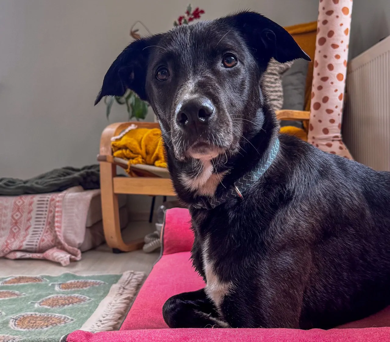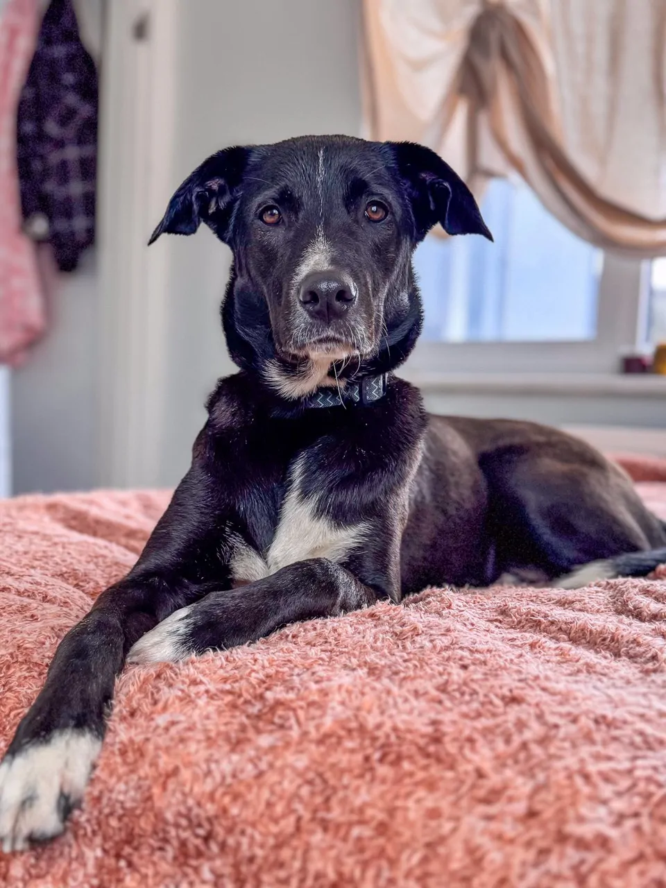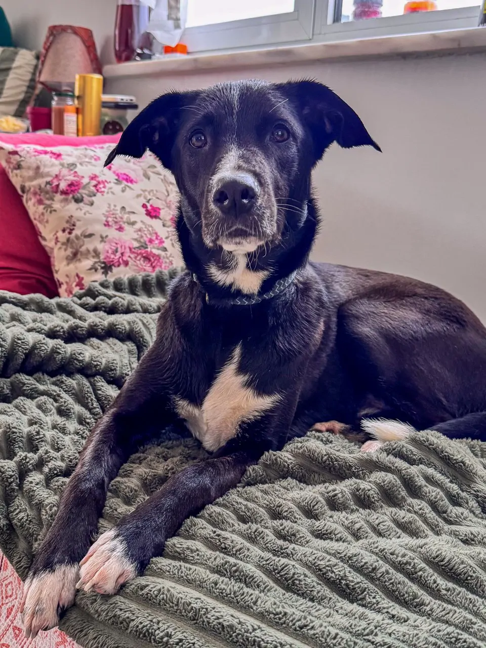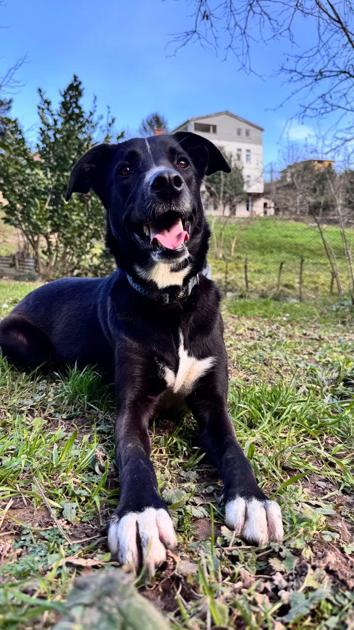 🖤 Merhaba… benim adım Beyaz. Evet… komiklik olsun diye koymuşlar 😄 Çünkü ben aslında simsiyah bir köpeğim. Göğsümde ve patilerimde küçük beyaz dokunuşlarım var sadece.