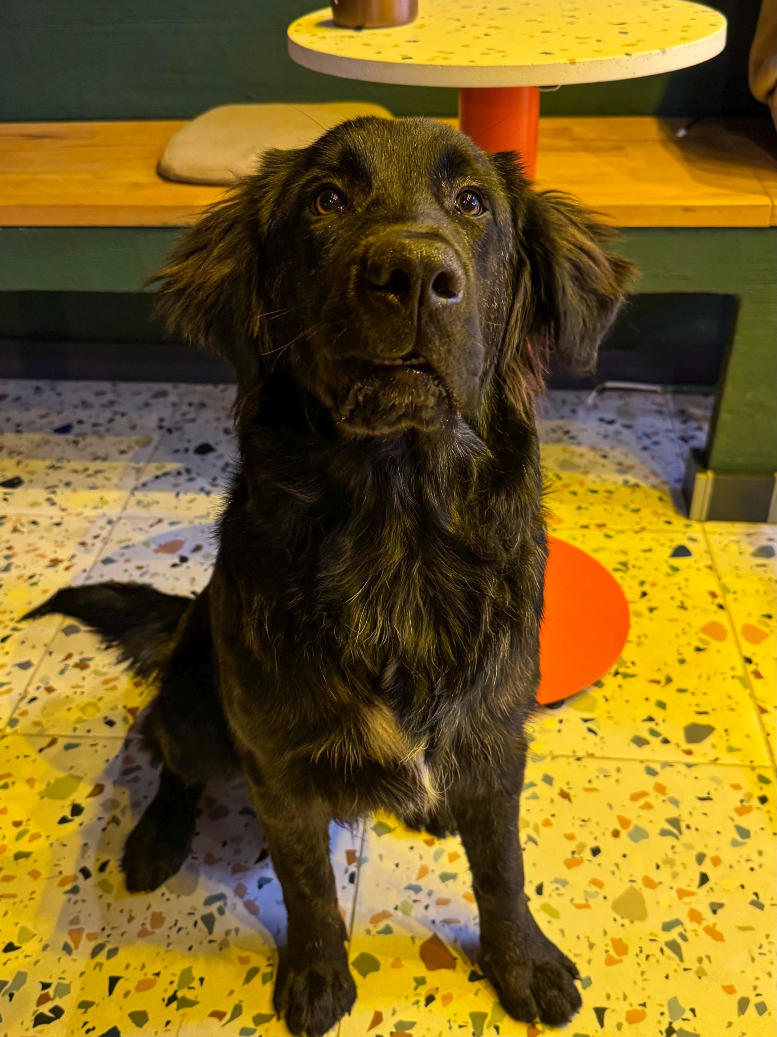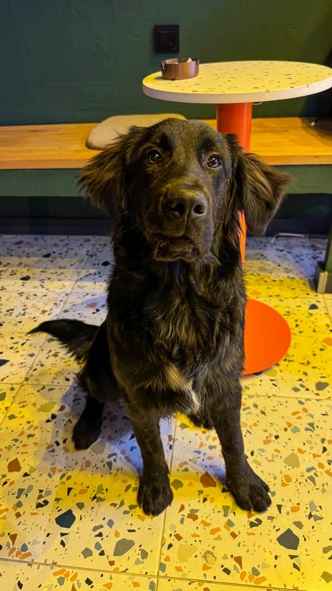 Merhaba, ben Felix. 21 Şubat 2025 doğumluyum — yani tam bir ergenim. Flat Coated Retriever meleziyim; şu anda 25 kilo civarındayım ama büyüdükçe 30-35 kilo aralığında olacağım.